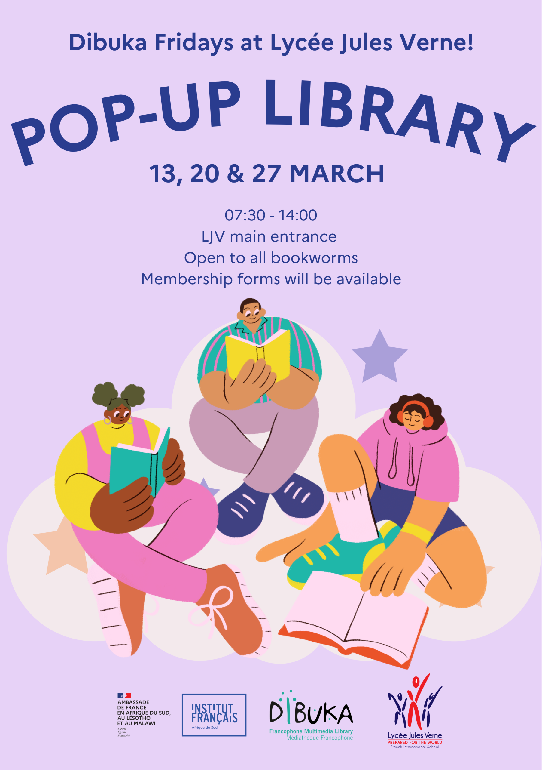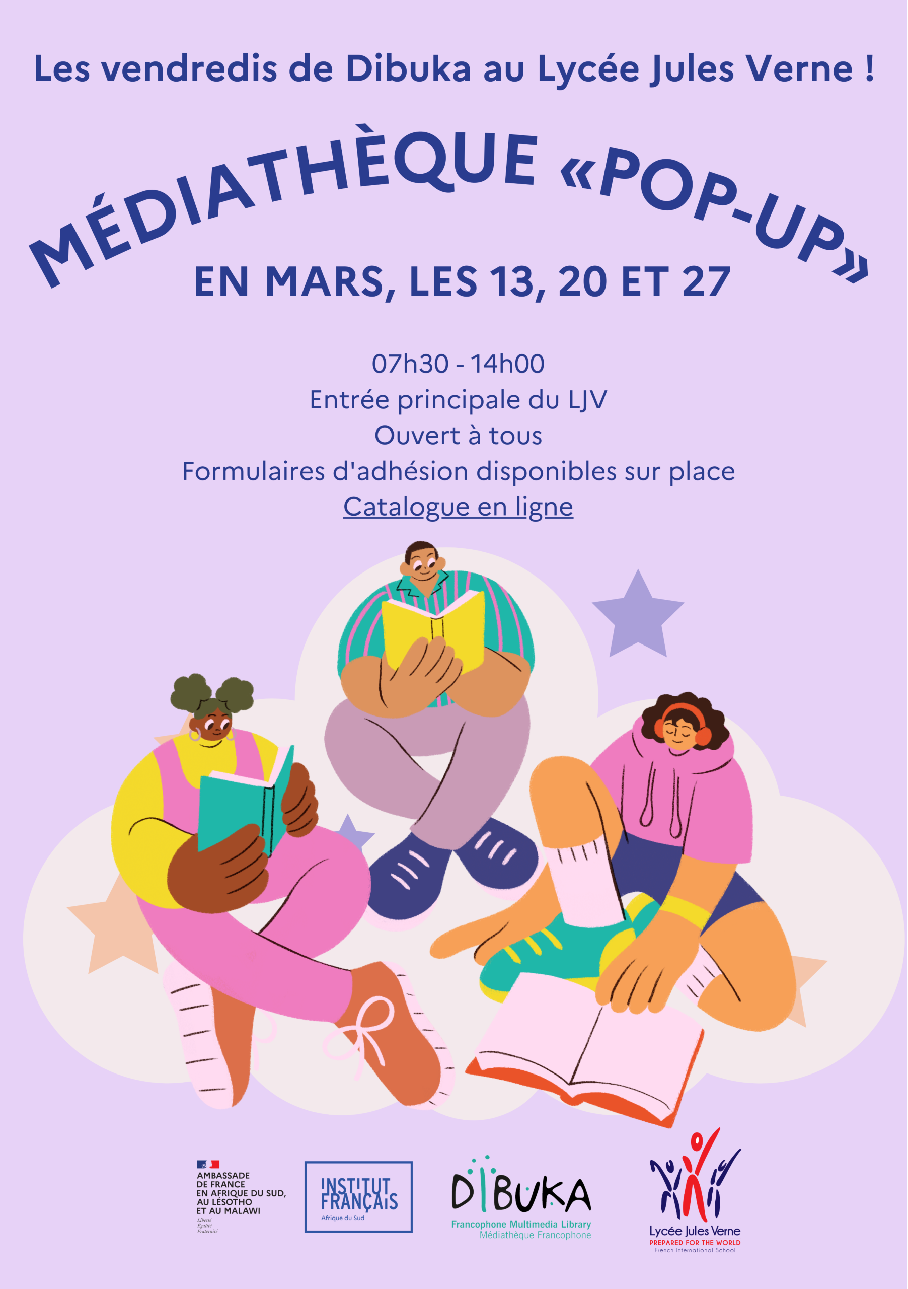 The IFAS team is ready to help you start the school year with a fresh selection of books. Join us on Fridays 13, 20, 27 March 2026 from 07:30 to 14:00 at the main entrance of Lycée Jules Verne.